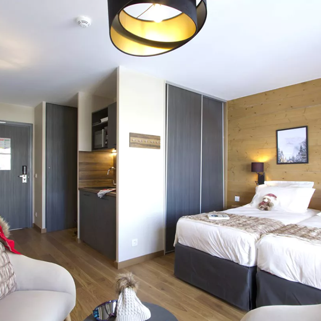 L'Appart'hôtel Prestige Odalys l'Eclose est un luxueux complexe situé dans le quartier de l'Eclose à l'Alpe d'Huez. La remontée mécanique se trouve à seulement 100 mètres. Vous séjournerez dans de magnifiques chambres et suites premium. Toutes sont décorées avec goût et disposent d'une salle de bains moderne et d'un balcon donnant sur les environs enneigés. Les suites pour 6 personnes possèdent également leur propre kitchenette.